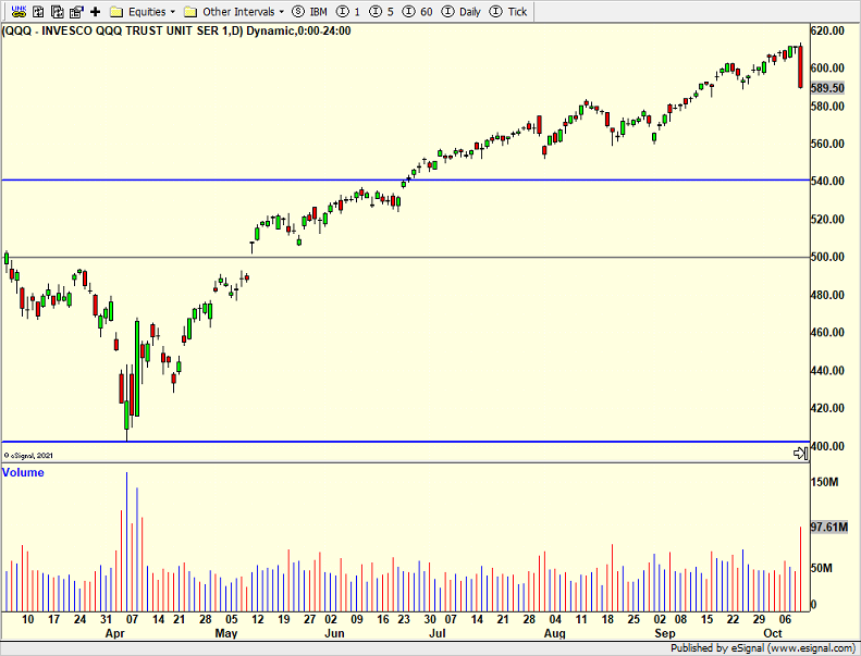 Friday was an ugly day for risk assets as most saw their largest one day plunges since the tariff tantrum period in April. A pullback has been for a while. 80%+ of the volume was in stocks that declined. What rallied the most was hit the hardest. The QQQ which tracks the NASDAQ 100 saw a volume spike to almost 100 million shares as early, all-time high celebrations reversed when Donald Trump tweeted about hitting China with “massive tariffs”. Whether I agree with that strategy or (I do not), I continue to vehemently disagree with releasing market moving information during the trading day.